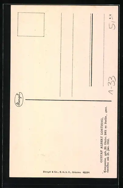 AK Gustav Albert Lortzing, Komponist, 1801-1851