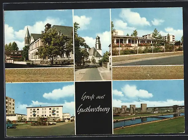 AK Gustavsburg, Kanäle, Kirche und Strassenpartien