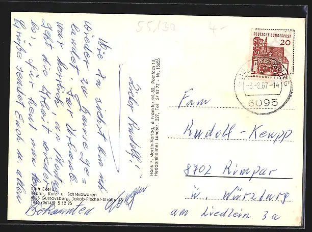 alte Ansichtskarte, gelaufen 1967, guter Zustand