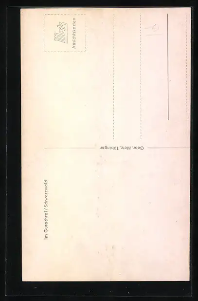 Personenbezogene Daten auf der Rückseite der Karte wurden durch blauen Textmarker unkenntlich gemacht. Die blauen Stellen sind auf die Vorderseite durchgeweicht und wirken sich negativ auf das Postkartenfoto aus