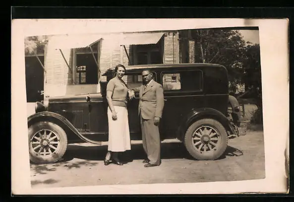 AK Gutbetuchtes Paar am Auto