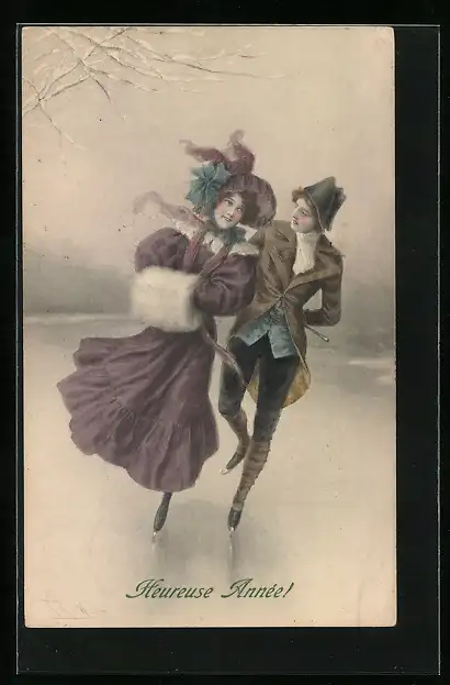 AK Gutbetuchtes Paar auf Schlittschuhen