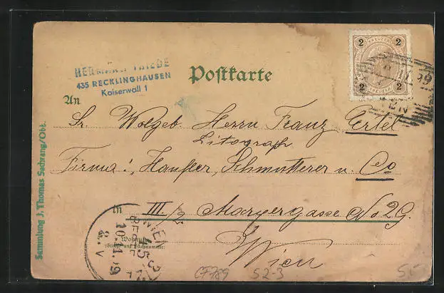 gelaufen 1899, leicht fleckig, sonst guter Zustand