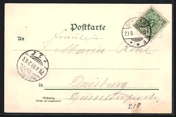 alte Ansichtskarte, gelaufen 1899, Eckknicke li., Bugspuren li. und re. oben, guter Zustand