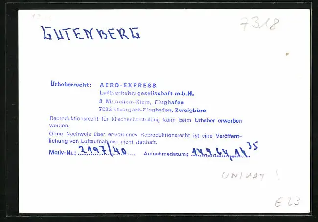 AK Gutenberg, Ortsansicht vom Flugzeug aus
