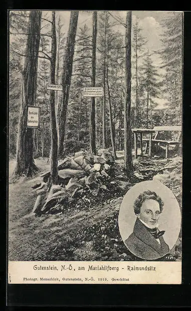 AK Gutenstein, Raimundsitz am Mariahilfberg, Portrait Raimund