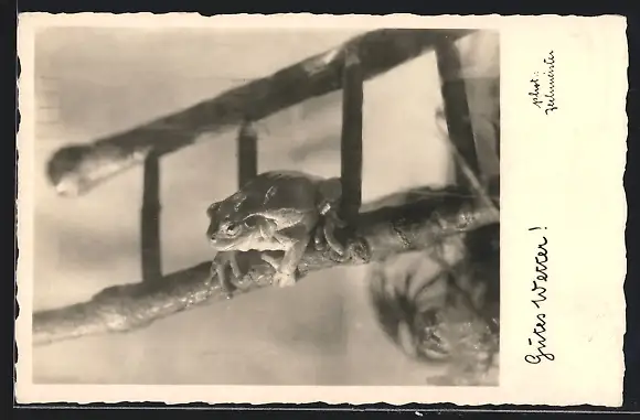 AK Gutes Wetter!, Frosch auf einer Leiter