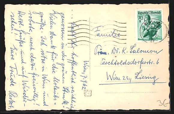alte Ansichtskarte, gelaufen 1962, Stempelspur, guter Zustand
