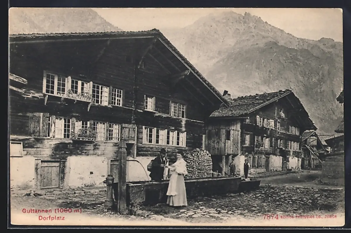 AK Guttannen, Dorfplatz mit Brunnen