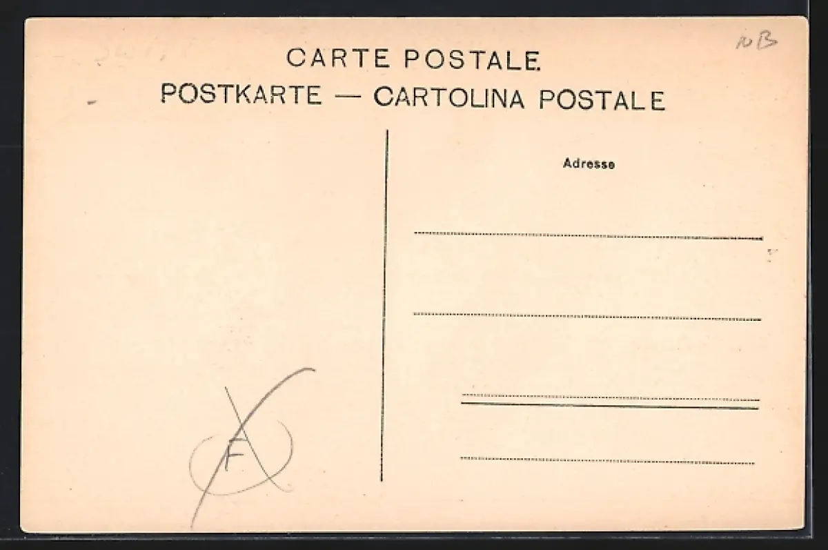 Personenbezogene Daten auf der Rückseite der Karte wurden durch blauen Textmarker unkenntlich gemacht. Die blauen Stellen sind auf die Vorderseite durchgeweicht und wirken sich negativ auf das Postkartenfoto aus