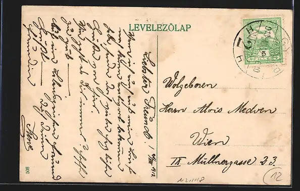 gelaufen 1913, Eckknick li. unten, guter Zustand