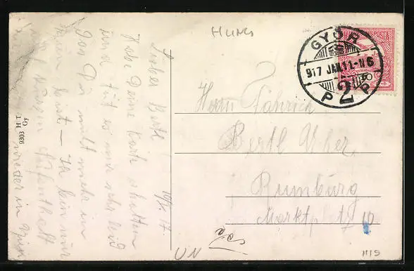 gelaufen 1917, Eckknick re. oben, Stempelspur, guter Zustand