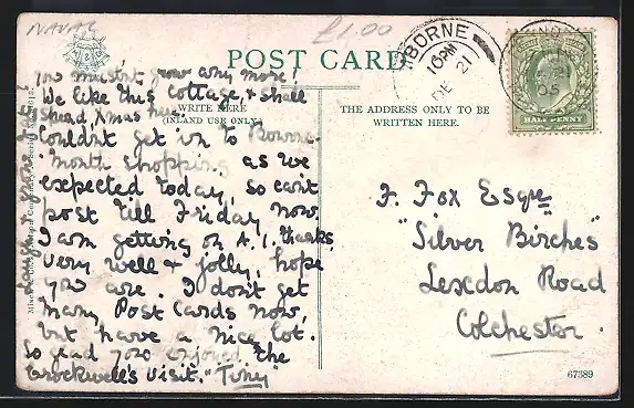 Personenbezogene Daten auf der Rückseite der Karte wurden durch blauen Textmarker unkenntlich gemacht. Die blauen Stellen sind auf die Vorderseite durchgeweicht und wirken sich negativ auf das Postkartenfoto aus