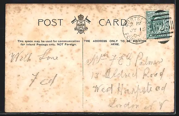 gelaufen 1904, Eckknicke unten, Bugspur li. oben, guter Zustand