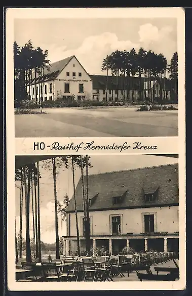 AK HO-Rasthof Hermsdorfer Kreuz mit Blick in den Garten