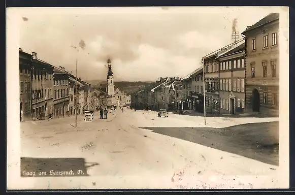 AK Haag am Hausruck, Strassenpartie mit Blick zur Kirche