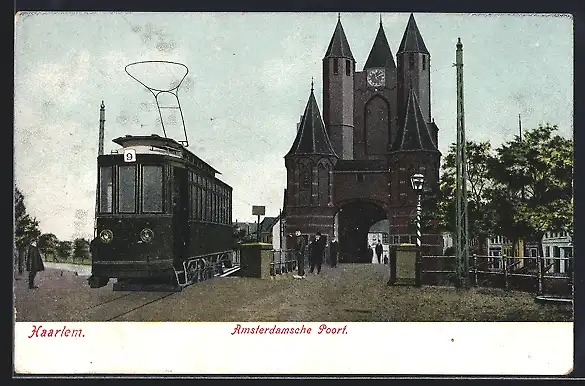 AK Haarlem, Amsterdamsche Poort, Strassenbahn