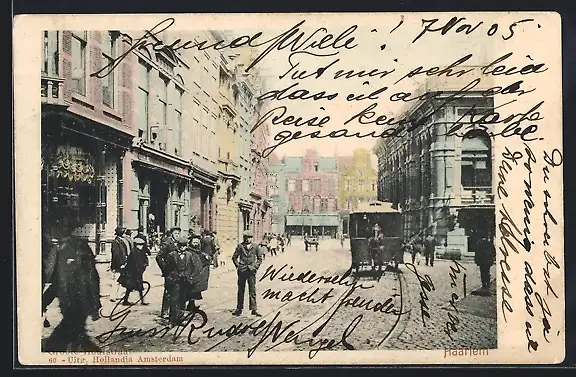 AK Haarlem, Strassenpartie mit Pferdebahn