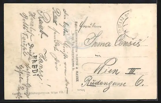 alte Ansichtskarte, gelaufen, Briefmarke entfernt, guter Zustand