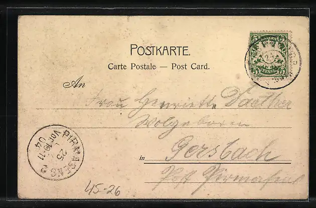 alte Ansichtskarte, gelaufen 1904, guter Zustand