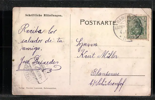alte Ansichtskarte, gelaufen, Eckknick li. oben, Bugspur re. oben, guter Zustand