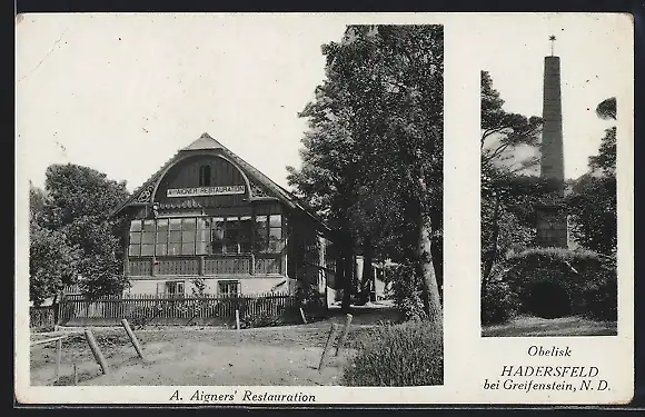 AK Hadersfeld, A. Aigner's Restauration, Obelisk