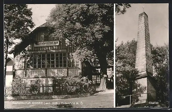 AK Hadersfeld, Gastwirtschaft Aigner mit Obelisk