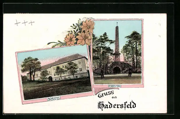 AK Hadersfeld, Obelisk, Ansicht vom Schloss