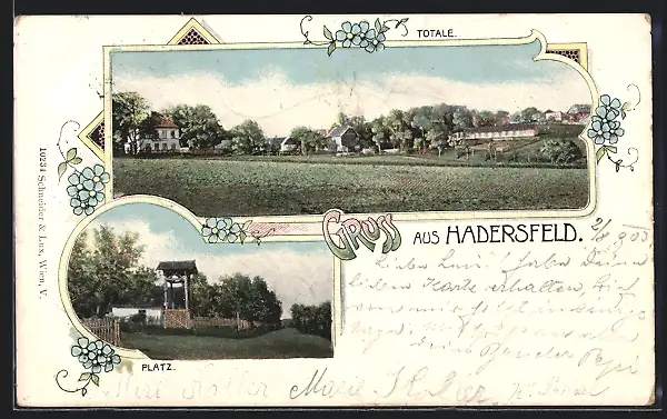 AK Hadersfeld, Ortsansicht, Strassenpartie am Platz