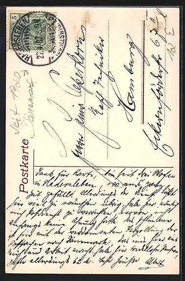 alte Ansichtskarte, gelaufen 1907, Eckknick li. unten, Stempelspur, guter Zustand
