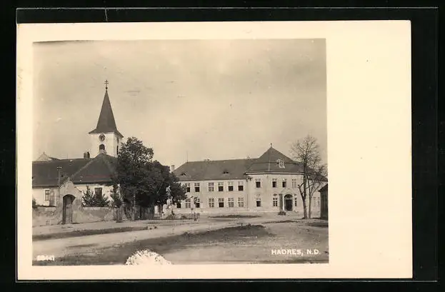 AK Hadres, Marktplatz mit Kirche und Friefhof