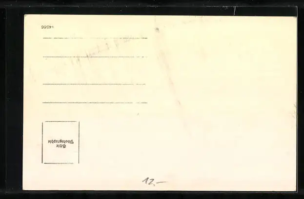 Personenbezogene Daten auf der Rückseite der Karte wurden durch blauen Textmarker unkenntlich gemacht. Die blauen Stellen sind auf die Vorderseite durchgeweicht und wirken sich negativ auf das Postkartenfoto aus