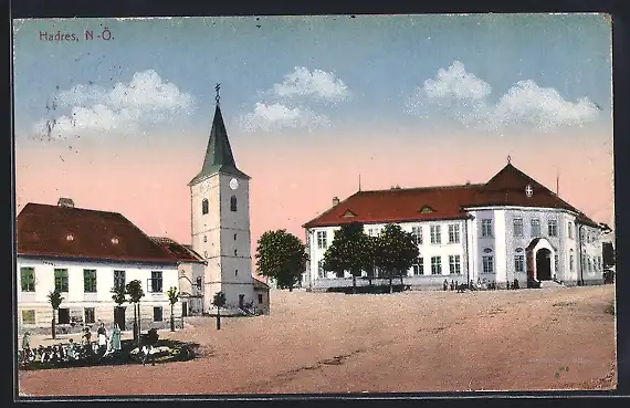 AK Hadres, Partie aus dem Ort mit Kirche