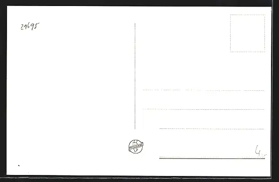 Personenbezogene Daten auf der Rückseite der Karte wurden durch blauen Textmarker unkenntlich gemacht. Die blauen Stellen sind auf die Vorderseite durchgeweicht und wirken sich negativ auf das Postkartenfoto aus