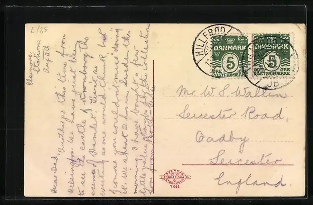 Personenbezogene Daten auf der Rückseite der Karte wurden durch blauen Textmarker unkenntlich gemacht. Die blauen Stellen sind auf die Vorderseite durchgeweicht und wirken sich negativ auf das Postkartenfoto aus