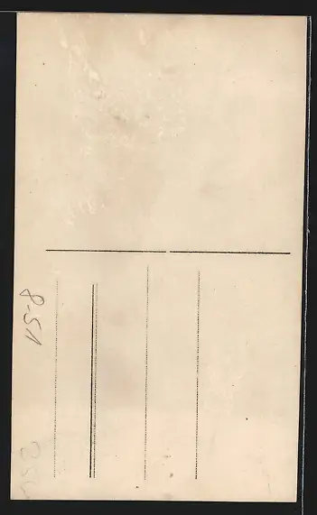 Personenbezogene Daten auf der Rückseite der Karte wurden durch blauen Textmarker unkenntlich gemacht. Die blauen Stellen sind auf die Vorderseite durchgeweicht und wirken sich negativ auf das Postkartenfoto aus