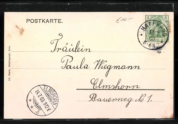 gelaufen 1903, Eckknicke re. oben und li. unten, guter Zustand