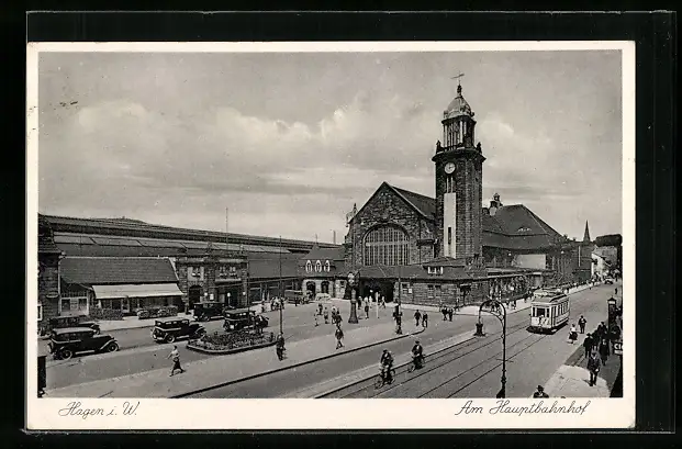 AK Hagen, Am Hauptbahnhof mit Strassenbahn