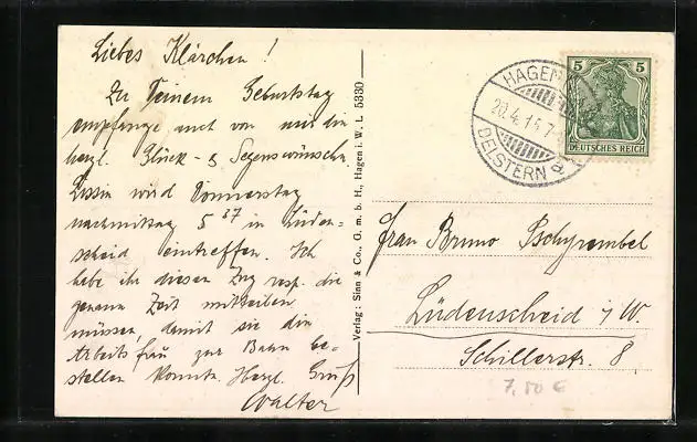alte Ansichtskarte, gelaufen 1915, guter Zustand