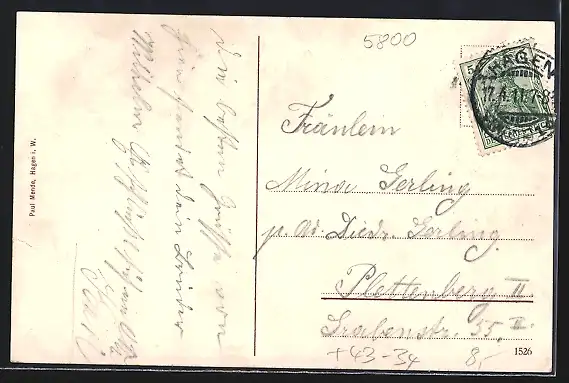 alte Ansichtskarte, gelaufen 1911, Bugspur re., guter Zustand