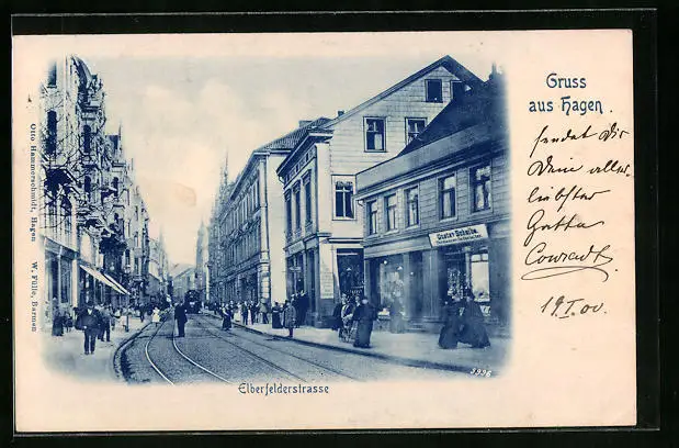 AK Hagen, Elberfelderstrasse mit Strassenbahn