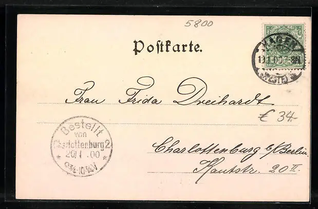 alte Ansichtskarte, gelaufen 1900, Eckknick unten re., guter Zustand