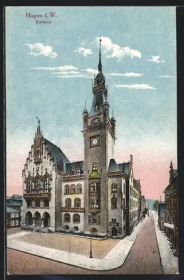 AK Hagen i. W., Rathaus mit Strassenpartie