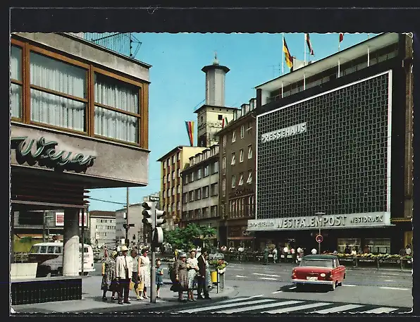 AK Hagen i. W., Strassenpartie mit Pressehaus