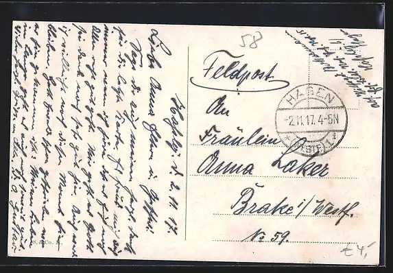alte Ansichtskarte, gelaufen 1917, Eckknick re. unten, guter Zustand