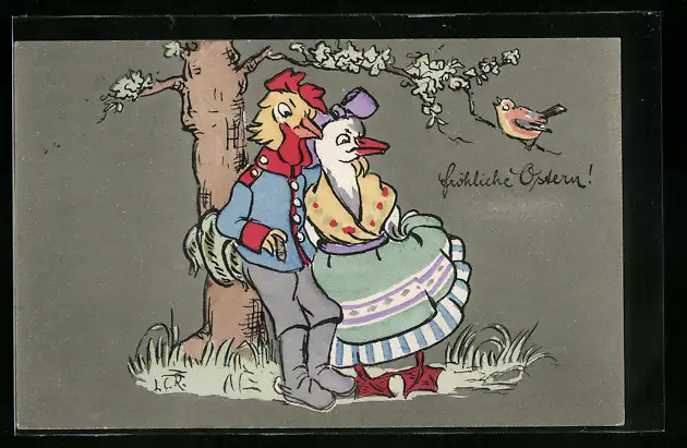 AK Hahn in Uniform mit seiner Liebsten zu Ostern
