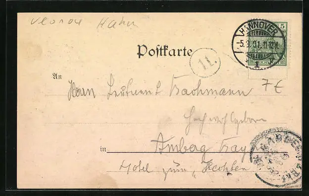 alte Ansichtskarte, gelaufen 1901, Eckknick unten re., Stempelspur, guter Zustand