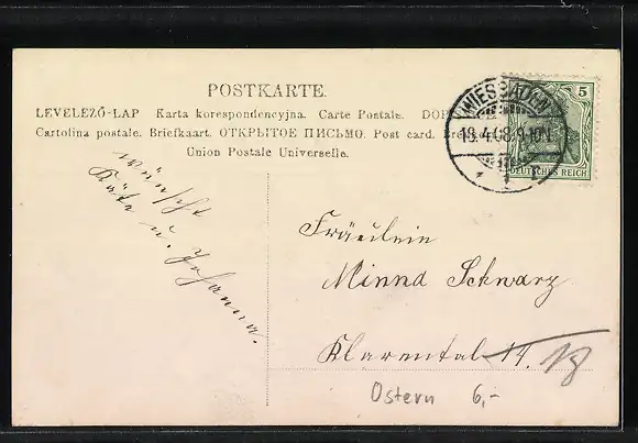 alte Ansichtskarte, gelaufen 1908, guter Zustand