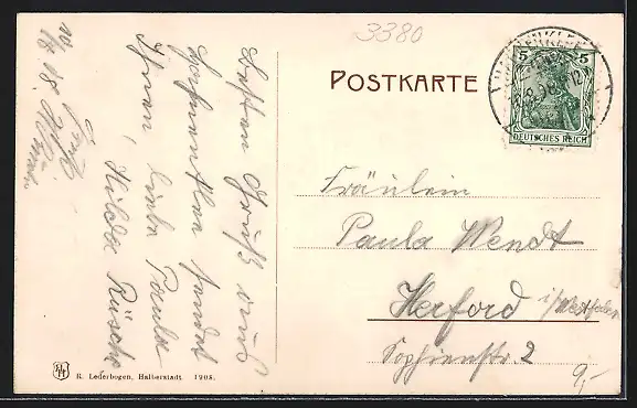 alte Ansichtskarte, gelaufen 1908, guter Zustand