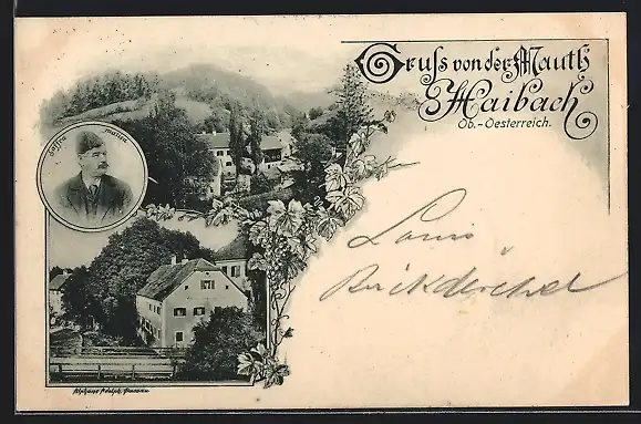AK Haibach, Gasthaus zur Mauth des Inns, Ortsansicht, Portrait Saffra Matica